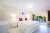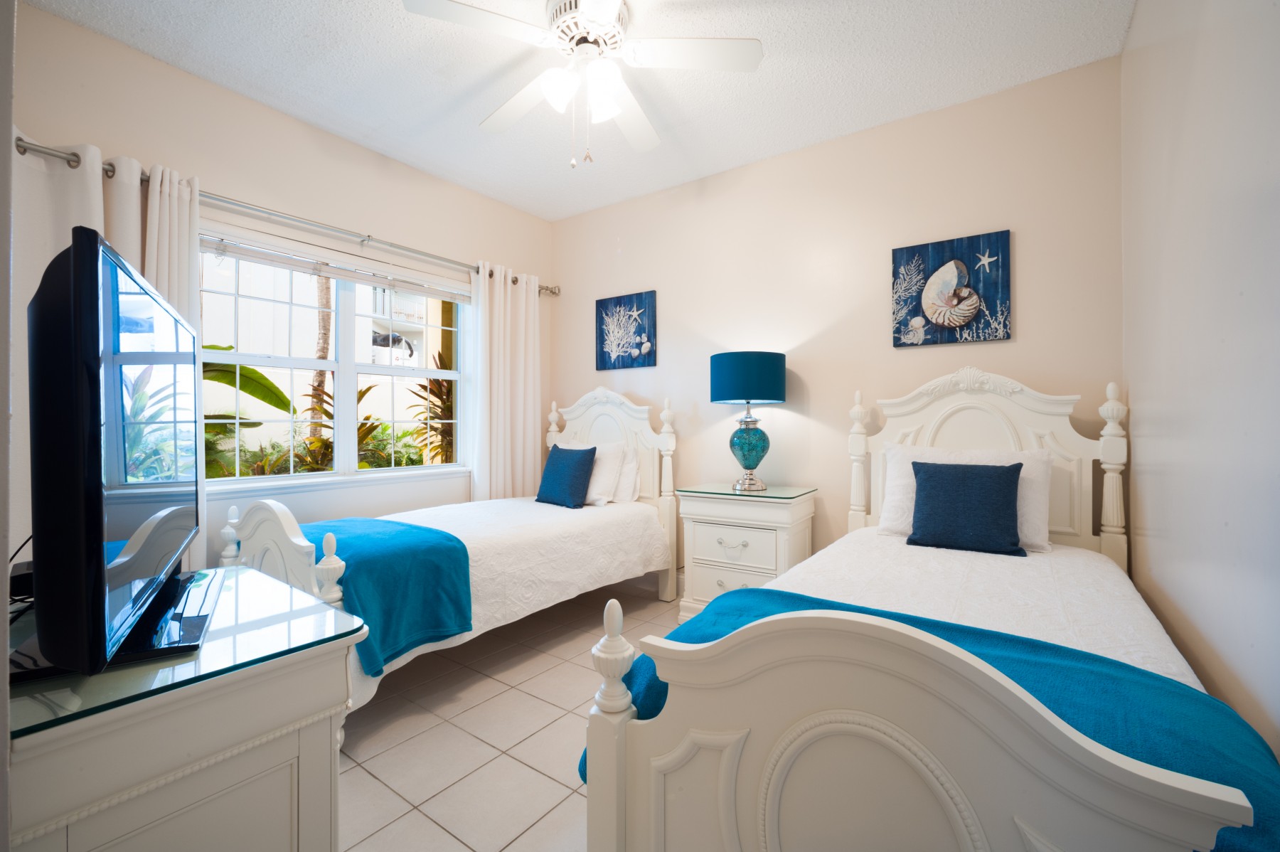 Ground floor direct ocean view condo with two bedrooms (1 King bed + 2 Twin beds) and two bathrooms (1 en-suite and 1 guest bathroom, both with a bathtub and shower). Large families can take advantage of the additional Queen-size sleeper sofa in the living room.
